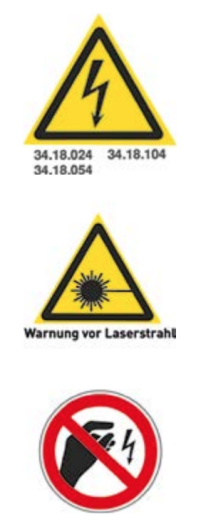- Warning of laser beam: Labels according to DIN EN ISO 7010-W004.
