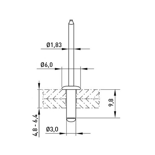 Blind Rivet Ø3.0x9.8 Aluminum Shell / Aluminum Mandrel
