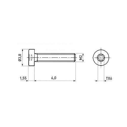 Cheese Head Screw ISO14580 M2x6 A2 Plain Stainless Steel Torx