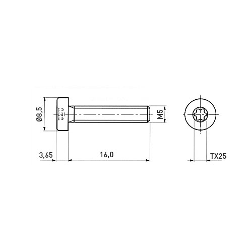 Cheese Head Screw ISO14580 M5x16 Galvanized Steel 8.8 Torx