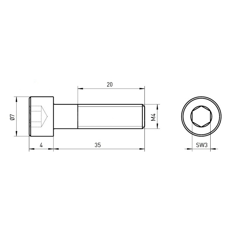 Cheese Head Screw ISO4762 M4x35 A2 Plain Stainless Steel Hexagon Socket