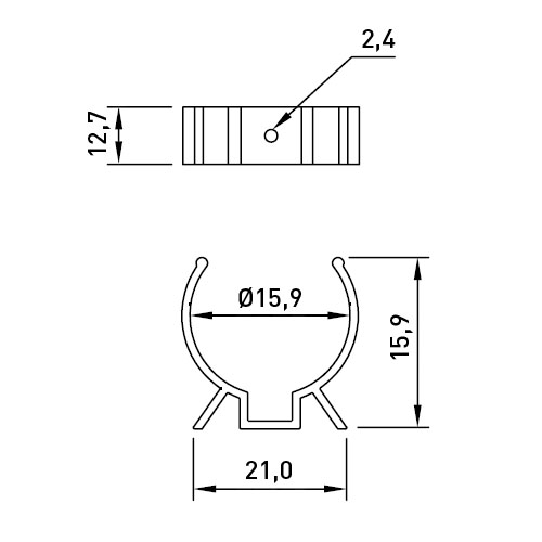 Component Clip ø15.9mm/12.7mm PVC black/hole ø2.4mm