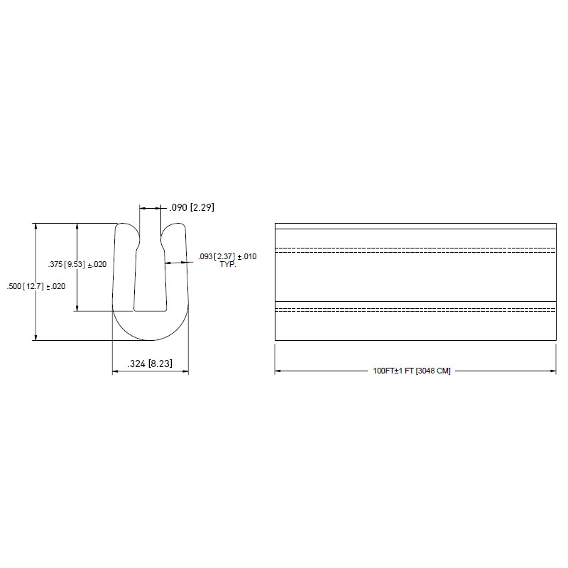 Continuous Grommet Strip 3.2mm TPR,black -50°/+60°C,Not UL listed