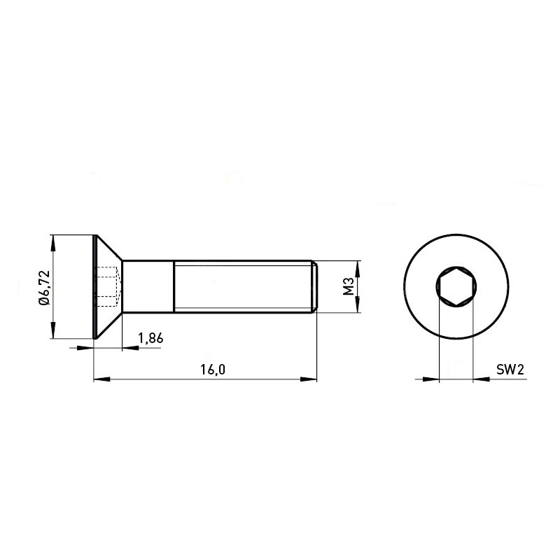 Countersunk Screw ISO10642 M3x16 Galvanized Steel 10.9 Hexagon Socket