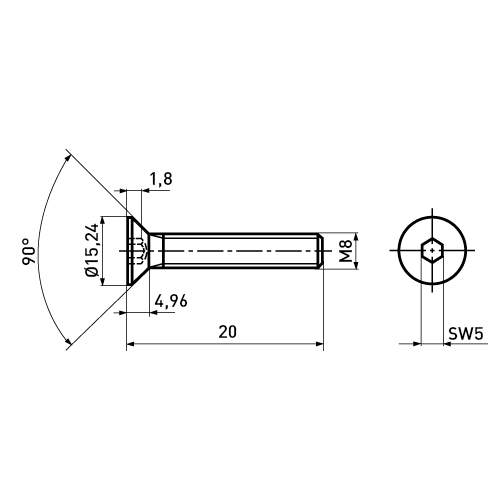 Countersunk Screw ISO10642 M8x20 Galvanized Steel 8.8 Hexagon Socket