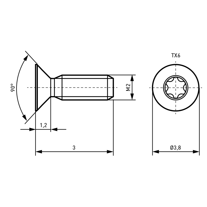 Countersunk Screw ISO14581 M2x3 A2 Plain Stainless Steel Torx