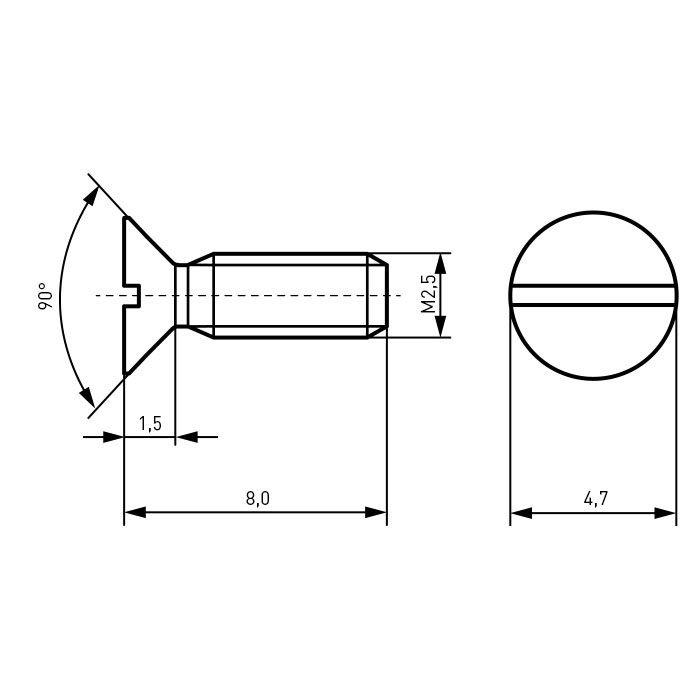 Countersunk Screw ISO2009 M2.5x8 Galvanized Steel 4.8 Slotted