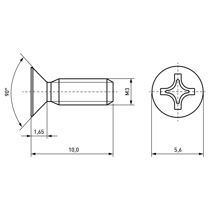 Countersunk Screw ISO7046 M3x10 Galvanized Steel 4.8 Cross Recessed