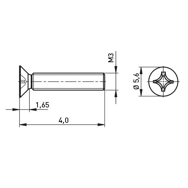 Countersunk Screw ISO7046 M3x4 Galvanized Steel 4.8 Cross Recessed