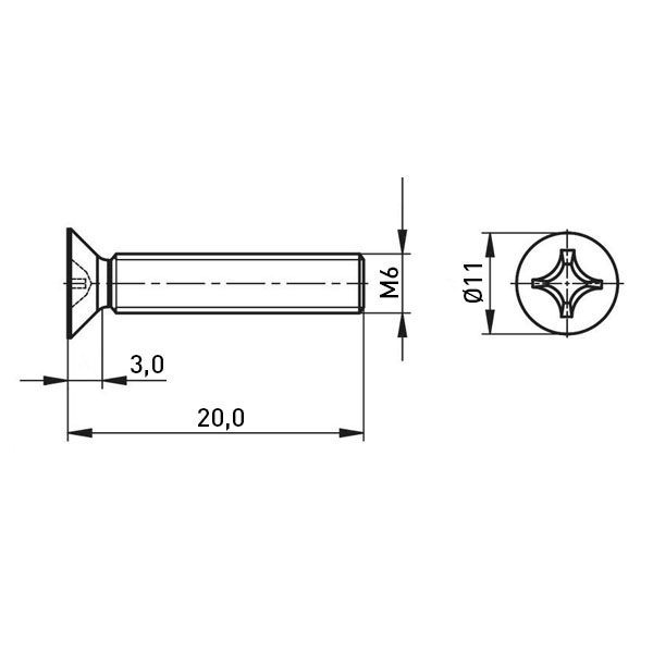 Countersunk Screw ISO7046 M6x20 Galvanized Steel 4.8 Cross Recessed