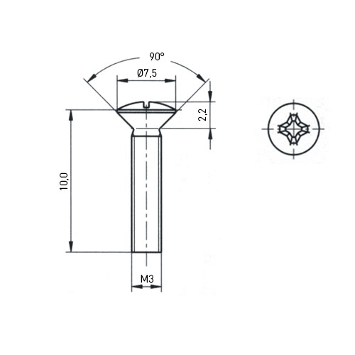 Countersunk Screw ISO7047 M4x10 Galvanized Steel 4.8 Cross Recessed