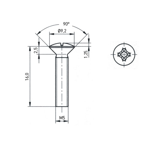 Countersunk Screw ISO7047 M5x16 A2 Plain Stainless Steel Cross Recessed
