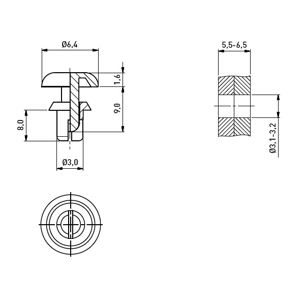 Drive Rivet Ø3.0 | 5.5-6.5 Polyamide 6 black