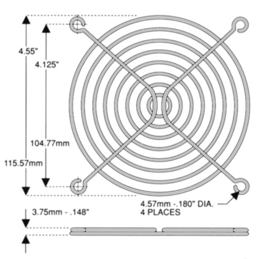 Fan Guard, wire form, 120mm - 4 1/2in, 8 rings, chrome-plated Technical sketch (JPG) 48.4 KB