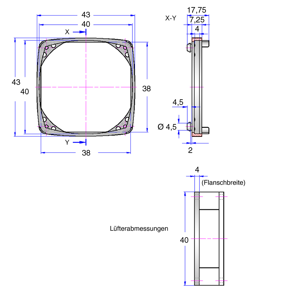 Fan Sleeves Fast Mounting / no vibrations, panelthk.1,5-2,5