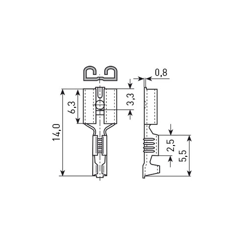 Fast On DIN 46247 2.8x0.8mm Brass tinned 0.5-1.0mm² AWG22-18