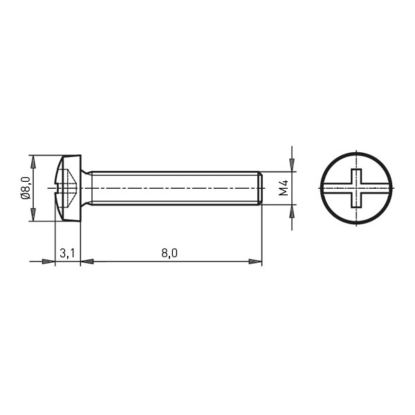 Flat Head Screw ISO7045 M4x8 PA-66 Cross Recess Pan Head