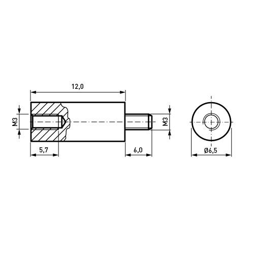 Insulated Standoff PA-Brass M/F Ø6.5x12 | F=M3x5.7 M=M3x6