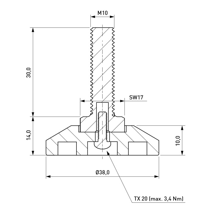 Leveling Foot Ø38.0 | Thread M10x30.0 PP - Steel