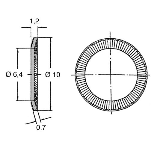 Lock Washer Ø6.4/10.0 x 0.7 Nickel-Plated Spring Ste Technical sketch (JPG) 47 KB