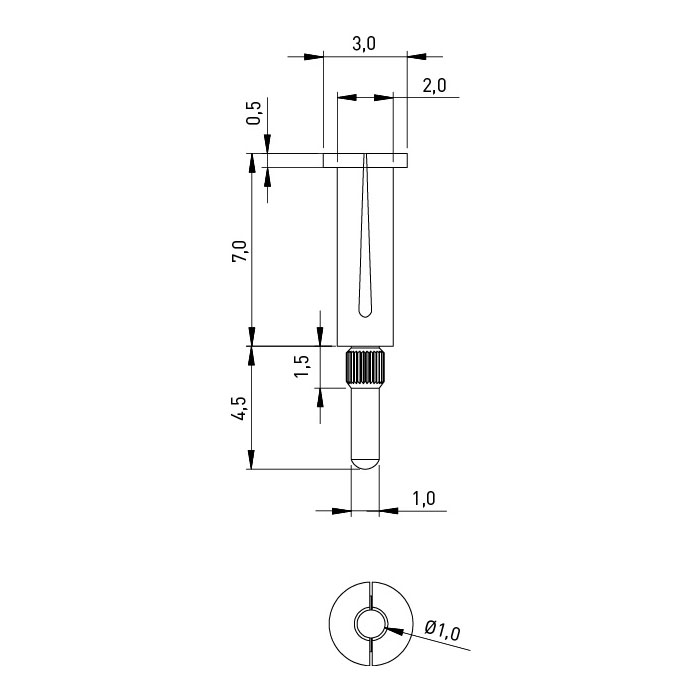 Micro Jack ø1.33x11.5mm Brass gold plated