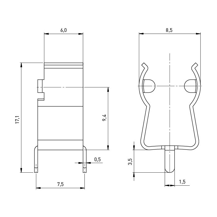 PC Fuse Clip ø8.5mm max. 6Amps Pins 3.5mm Brass nickel-plated