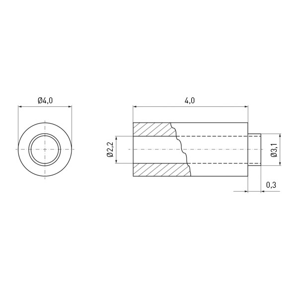 Round Spacer Ø2.2/4.0 x 4.0 PA/GF black | with Lug Ø3.1 x 0.3