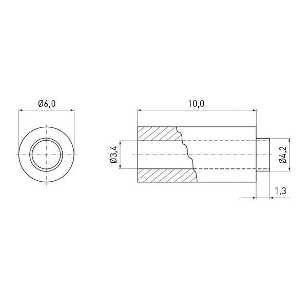 Round Spacer Ø3.4/6.0 x 10.0 PA/GF black | with Lug Ø4.2 x 1.3