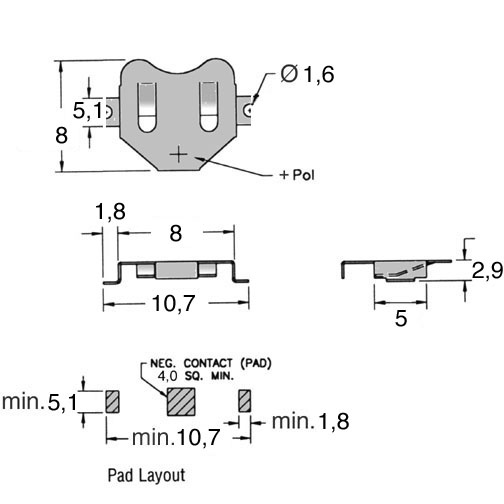 SMD Coin Cell Retainers for ø6.8mm Side Entry for ML414 micro battery Technical sketch (JPG) 41.3 KB