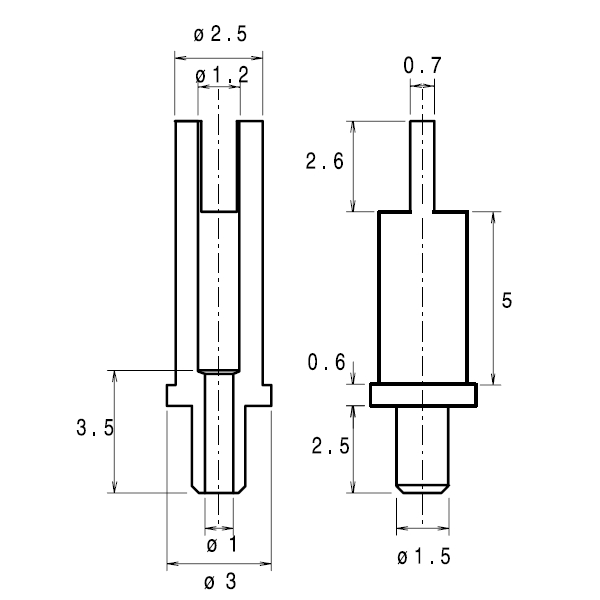 Solder Terminal ø1.5x10,7mm Brass tinned