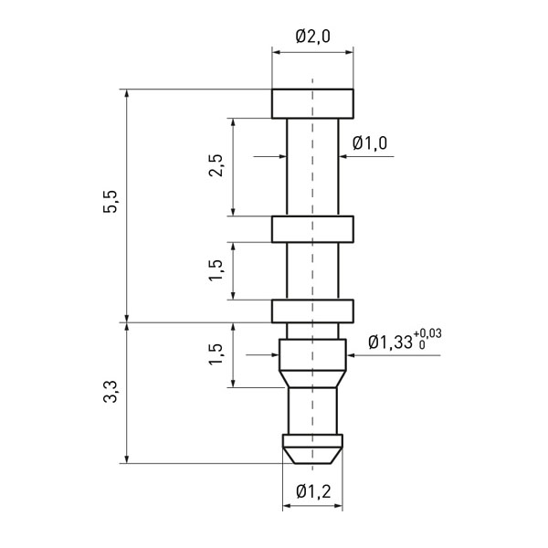 Solder Terminal ø2.0/1.33x8.8mm Brass tinned