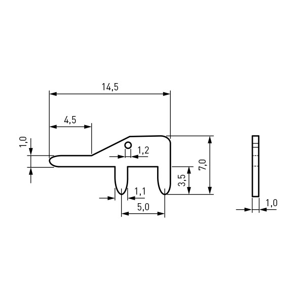 Solder Terminal Pin 1.1x14.5mm 90° Brass silver-plated 1.0mm thick