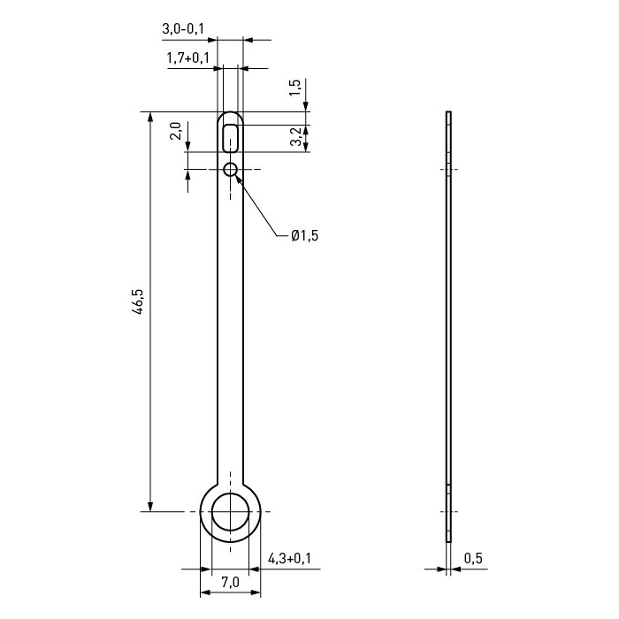Soldering tag ø4.3/7.0x46.5mm Brass tinned 0.5mm thick