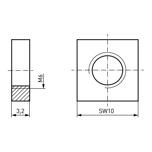 Square Thin Nut DIN562 M6 Galvanized Steel