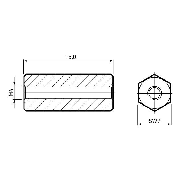 Standoff Galvanized Steel F/F AF7x15 | Thread M4 Full-Length