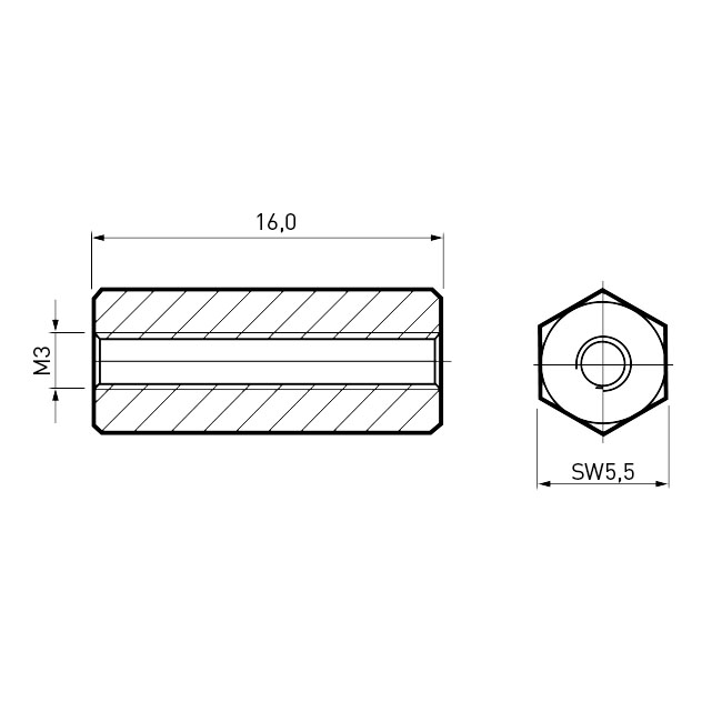 Standoff Nickel-Plated Brass F/F AF5.5x16 | Thread M3 Full-Length