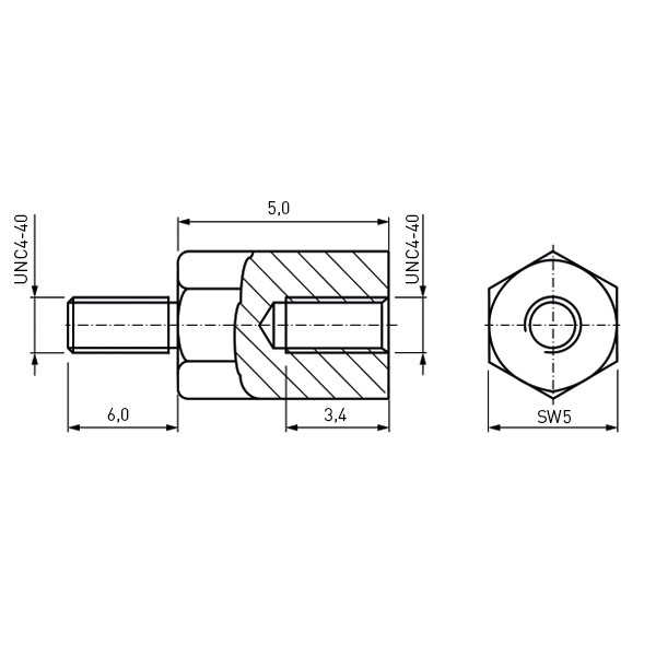 Standoff Nickel-Plated Brass M/F AF5x5 F=4-40x3.4 M=4-40x6 w/ UC