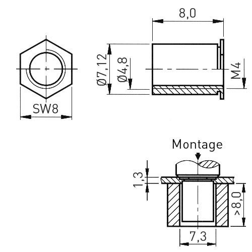 Swage Standoff M4x8.0 A2 Stainless Steel Passivated