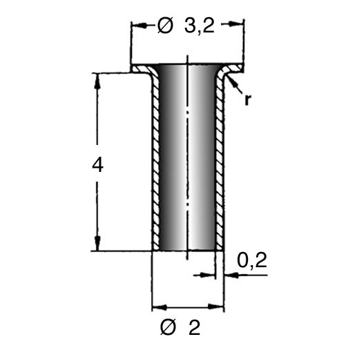 Tubular Rivet DIN7340 A 2.0x0.2x4.0 Silver-Plated Brass Technical sketch (JPG) 33.3 KB