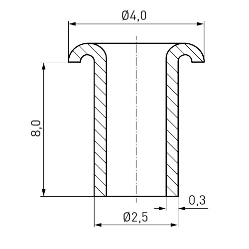Tubular Rivet DIN7340 B 2.5x0.3x8.0 Nickel-Plated Brass