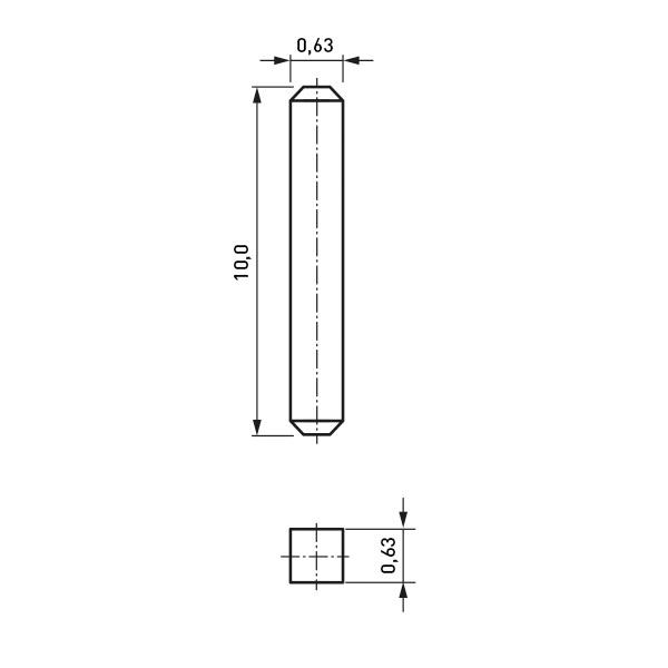 Wire-wrap pin 0.63x10.0mm square Brass tinned
