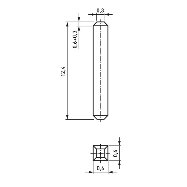 Wire wrap pin 0.6x12.4mm square Brass tinned
