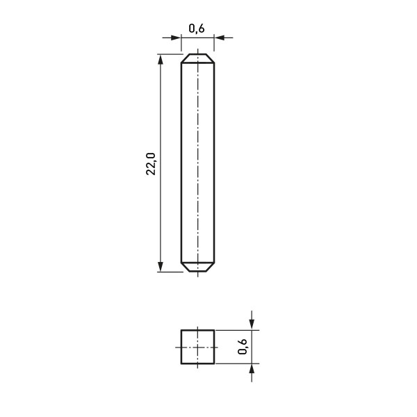Wire wrap pin 0.6x22.0mm square Brass gold-plated