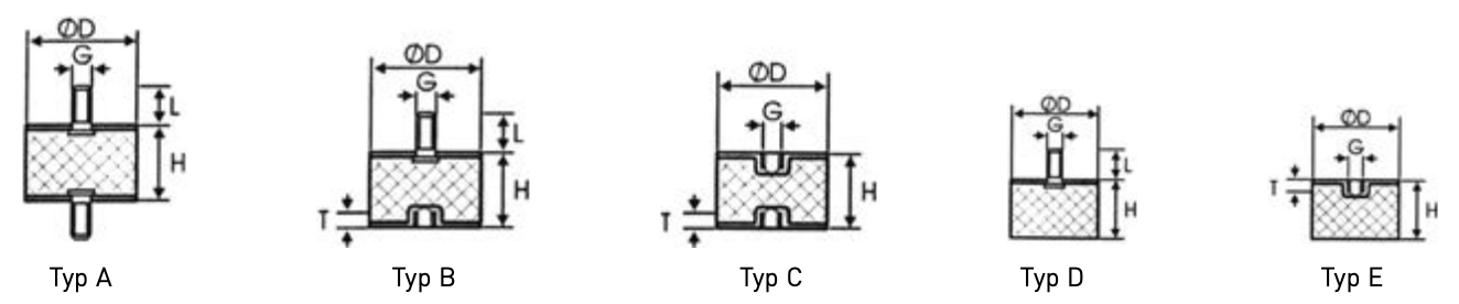We supply both rubber and neoprene vibration dampers with the following Shore hardnesses:
