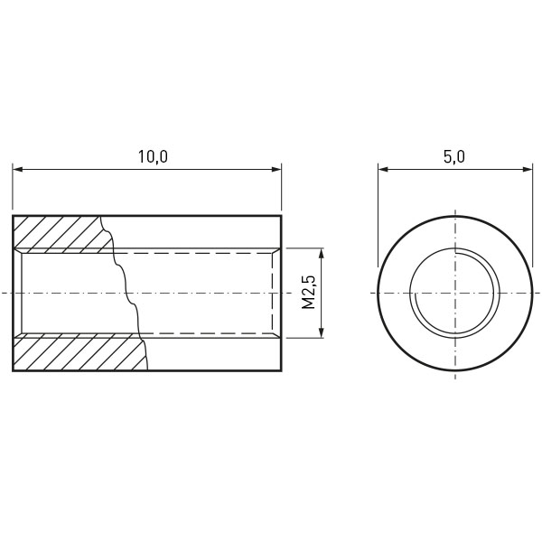 Abstandsbolzen PA6.0 GV25 schwarz I/I Ø5x10 | Gewinde M2,5 durchgehend