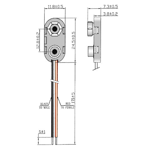 Batterie Anschlusskabel 9V 175mm mit Spezialnietung