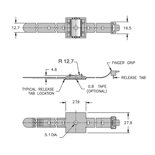Bauteilehalter m.Zahnband ø25,4mm Schraubmontage Ø5,1mm/UL94-HB