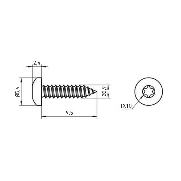 Blechschraube ISO14585 Form C Ø2,9x9,5 Einsatzstahl Zink sw Torx Linsenkopf
