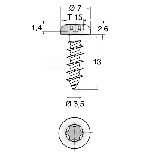 Blechschraube ISO14585 Form C Ø3,5x13 Einsatzstahl verzinkt Torx Linsenkopf