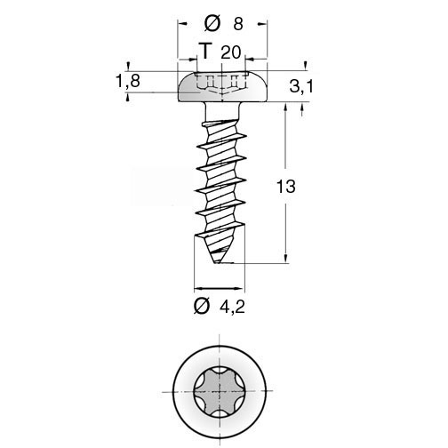 Blechschraube ISO14585 Form C Ø4,2x13 Einsatzstahl verzinkt Torx Linsenkopf